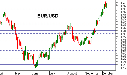 Il cambio tra la moneta unica europea ed il biglietto verde ha subito uno strappo al rialzo, arrivando nella mattinata di ieri a toccare addirittura quota 1,4120, dopo aver fatto registrare il superamento della resistenza posta a 1,400-1,403.